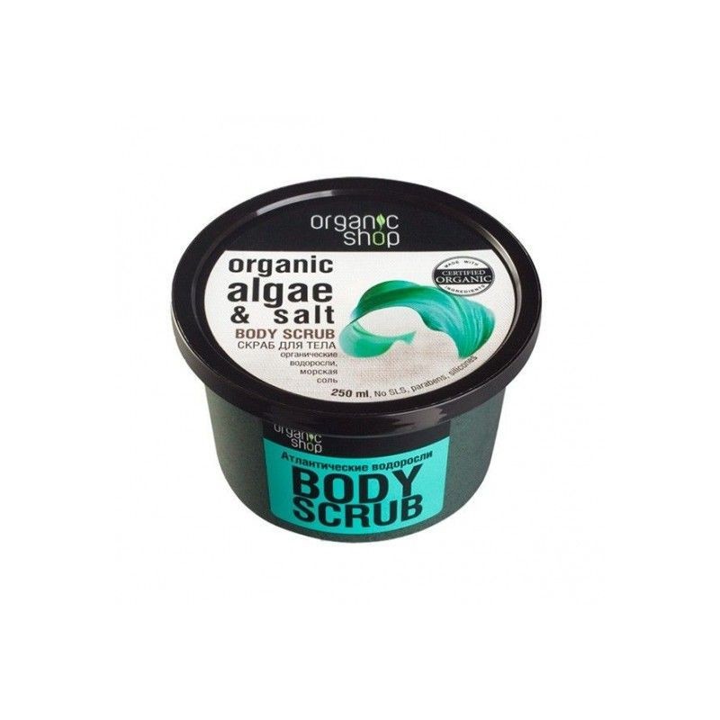 Exfoliante corporal suave con algas orgánicas y sal natural.