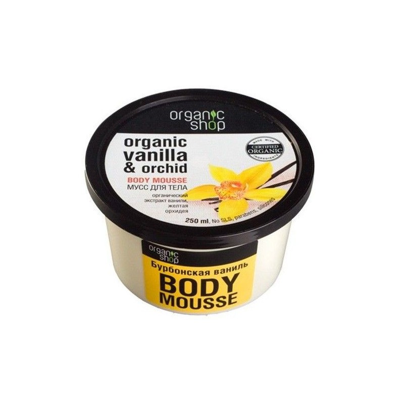 Mousse corporal con extracto de vainilla y orquídea orgánicas.
